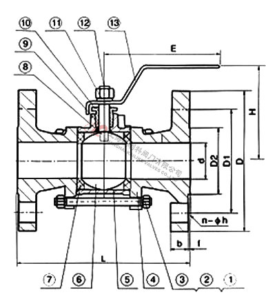 4、Q41F三片式法兰球阀主要根据剖面、长度、高度、外形等作出说明。