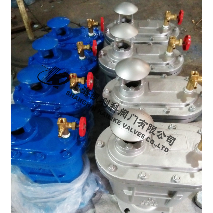 当管内开始注水时,塞头停留在开启位置,进行大量排气,当空气排完时,阀内积水浮球被浮起,传动塞头至关闭位置,停止大量排气;当管内水正常输送时,如有少量空气聚集在阀内到相当程度,阀内水位下降,浮球随之下降,此时空气则由小孔排出。当抽水机停止,管内水流空时,或遇管内产生负压时,此时塞头开启,吸入空气确保管线安全。