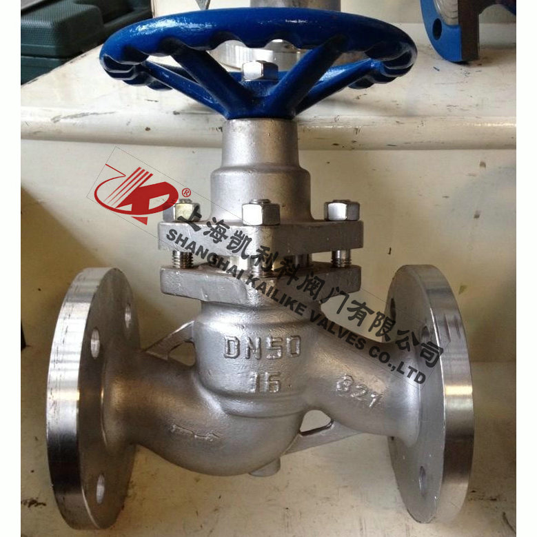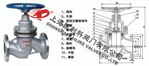 UJ41H柱塞截止阀是由阀体、阀盖、阀杆,柱塞,导向、密封环、手轮等零件组成。当手轮旋转时,通过阀杆带动柱塞在导向套中上、下往复运动,使柱塞端部斜锥面与阀座锥面完成阀门的开启与关闭功能。