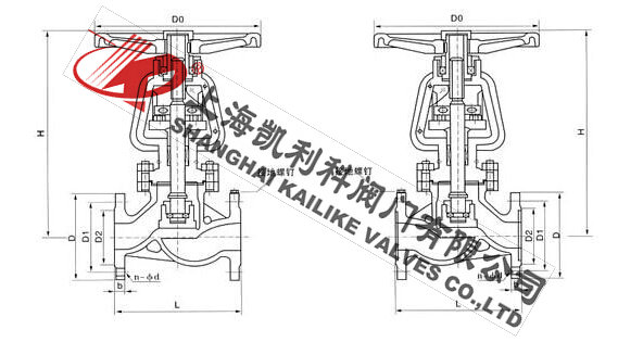 2、介质流向:PN≥1.6MPa、DN≤100介质由阀瓣下方流入阀瓣上方(即低进高出),DN≥125介质由阀瓣卜方流入下方(高进低出)o对于DN≥125的阀门采用介质高进低出的流向,一方面足内旁通阀结构上的需要,另一方面由于介质压力的作用使阀门的关闭力大大减小。