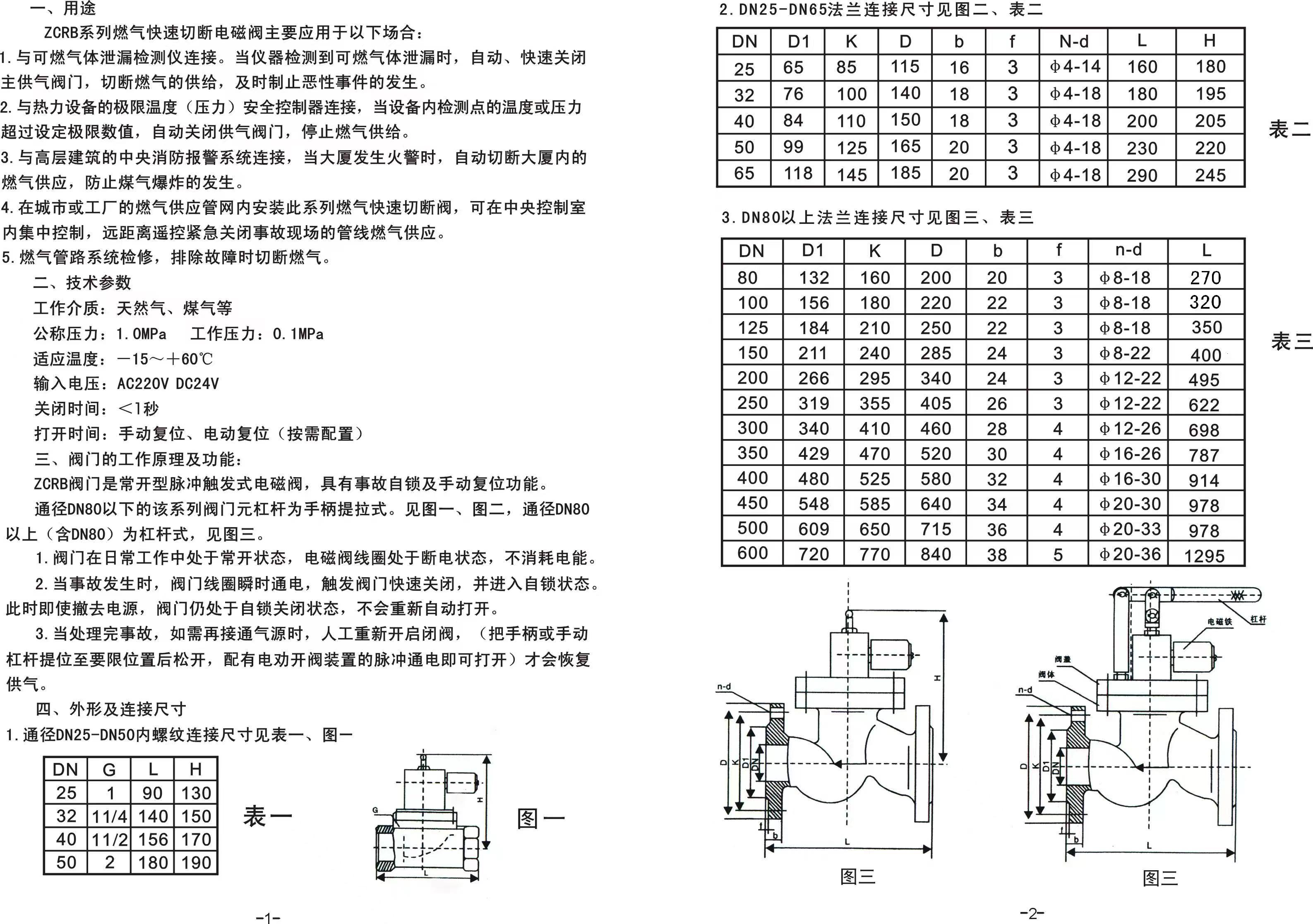 燃气电磁阀,燃气紧急切断电磁阀说明书